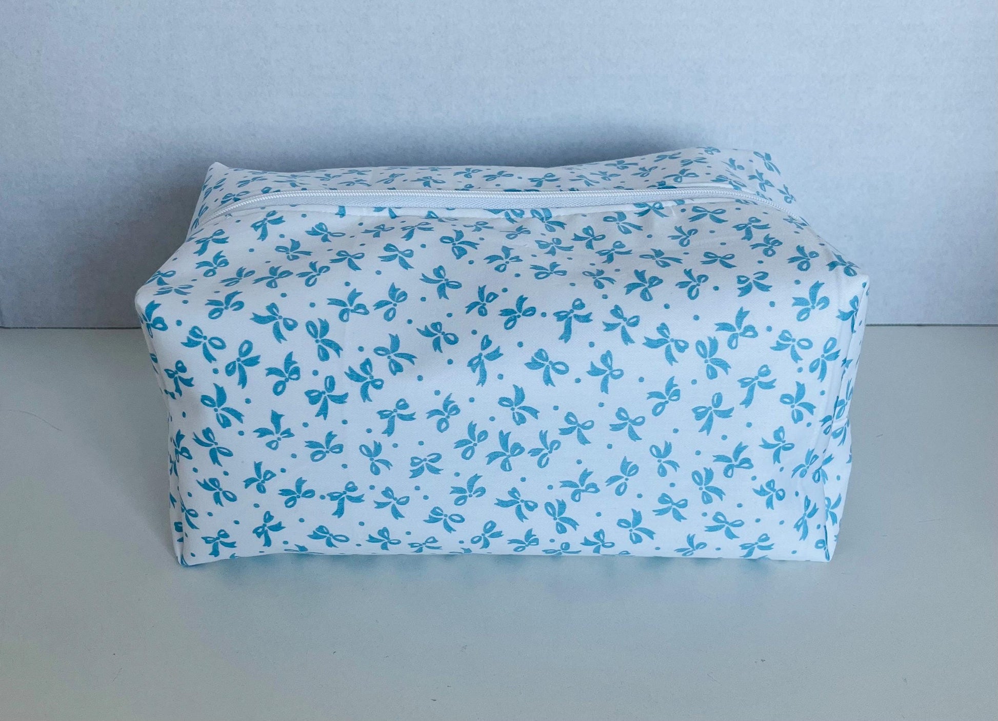 Travel in style with our Blue Bow Print Wash Bag – a charming, handmade essential that’s as practical as it is pretty.