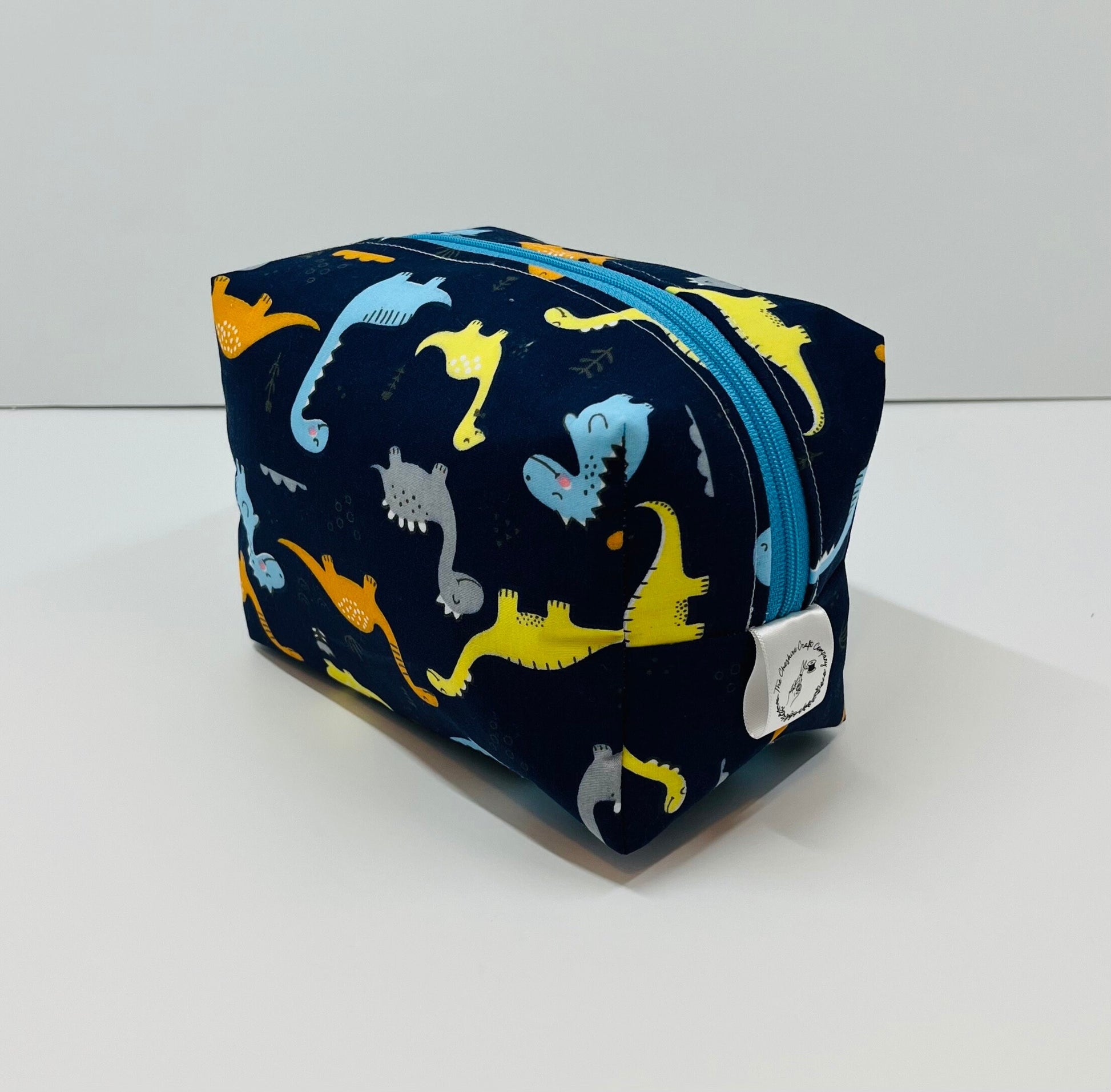 Introducing our fun and playful Blue Dinosaur Print Makeup Bag, handmade in the UK from premium cotton fabric.