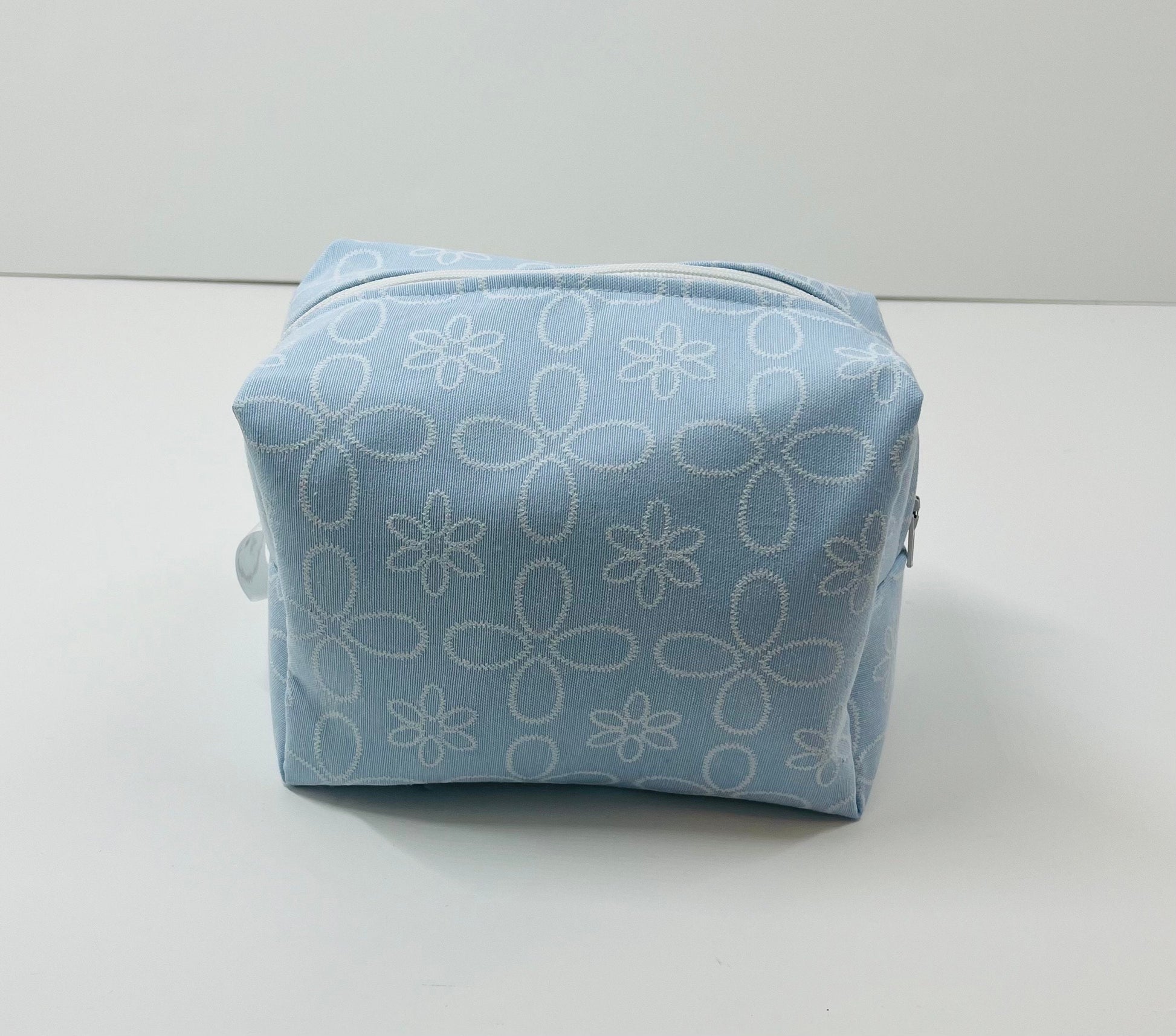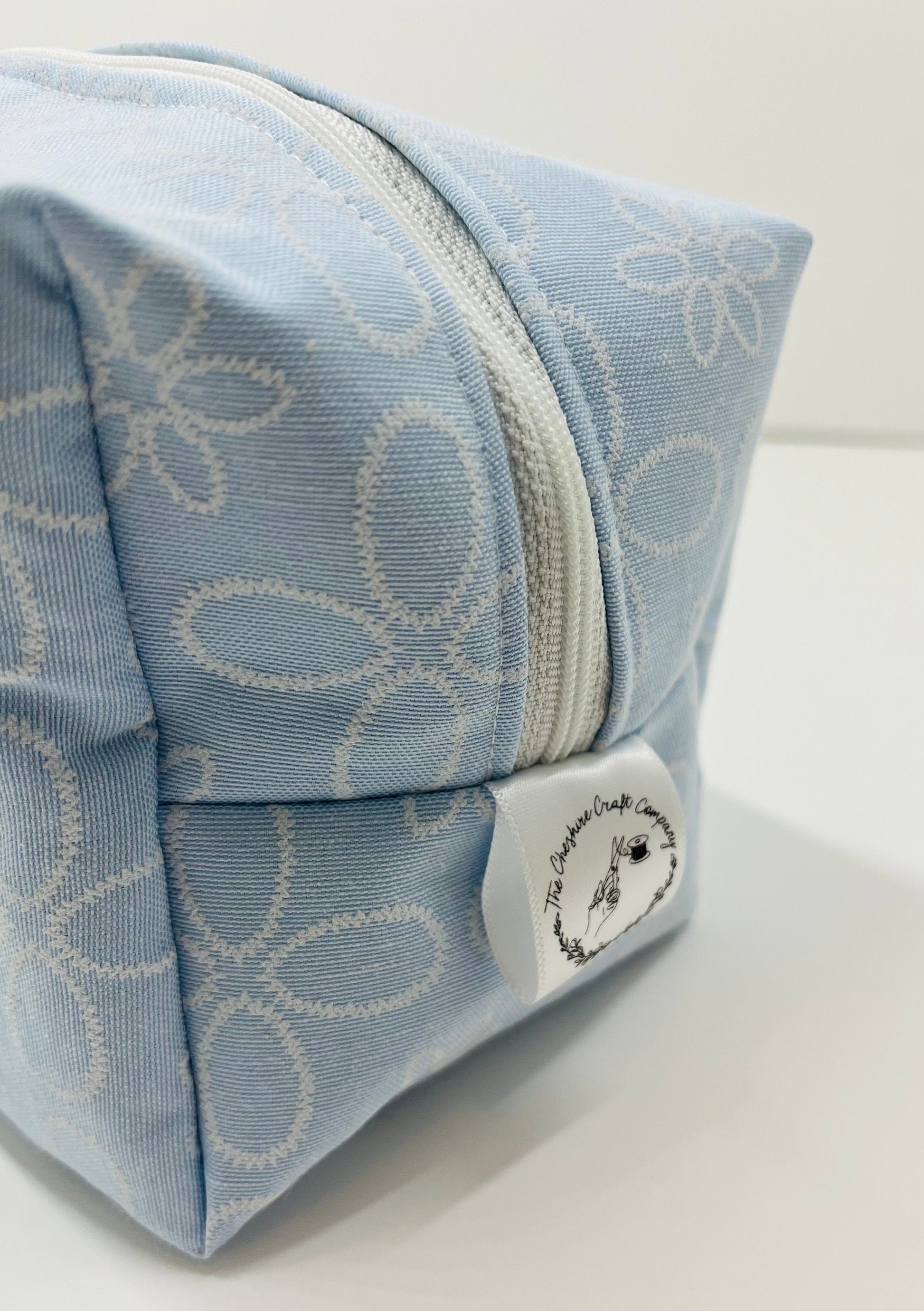 Presenting our Blue Embroidered Print Makeup Bag, handmade in the UK from premium cotton fabric. Featuring a delicate embroidered design, it’s both elegant and practical.