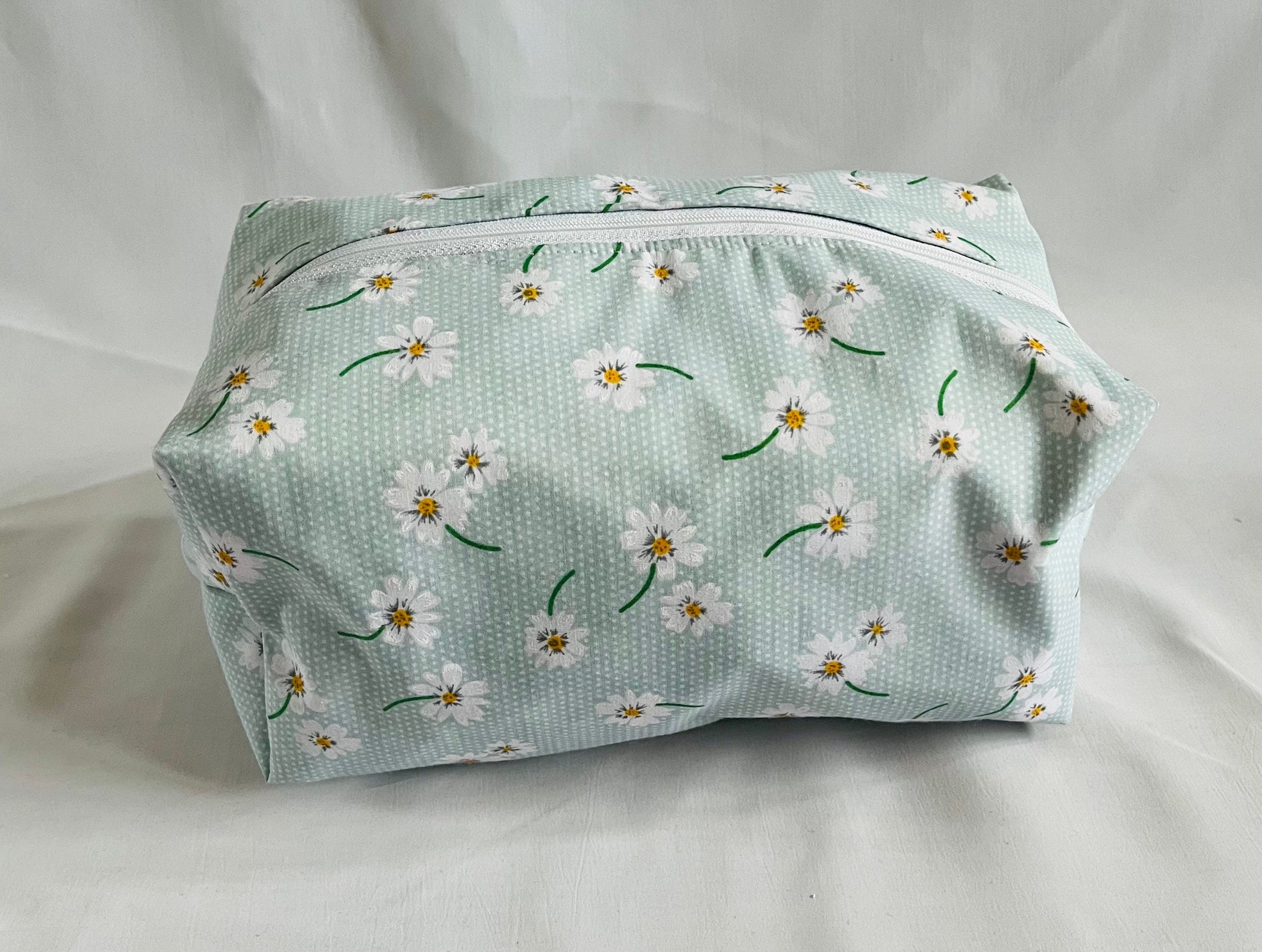 Introducing our Elegant Green Daisy Print Wash Bag — a perfect blend of style and practicality.