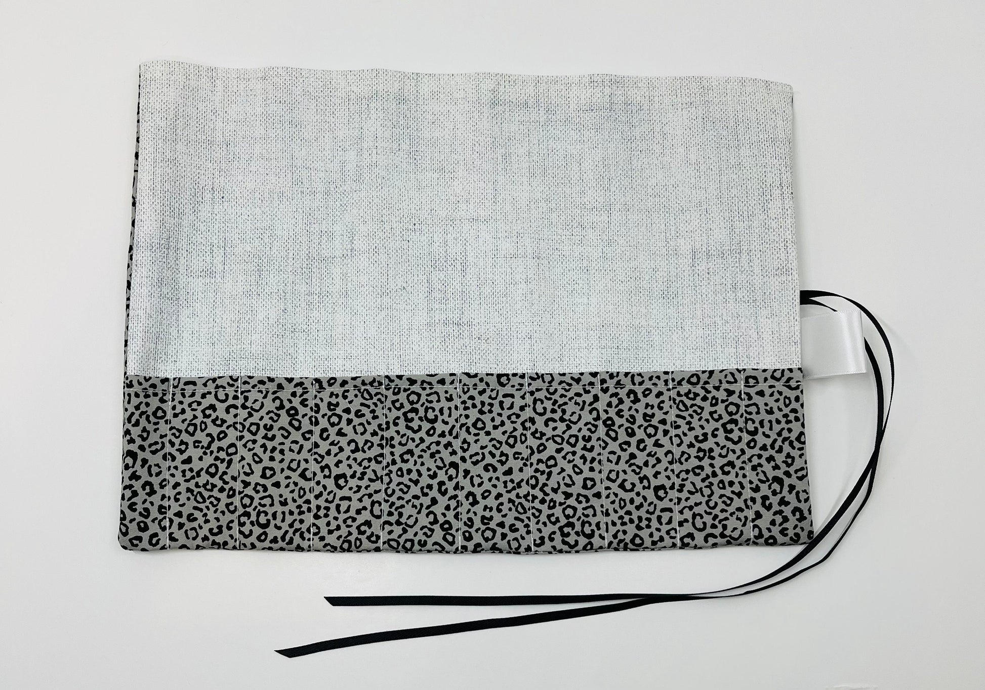 Handmade with love: Each brush roll is meticulously crafted from durable cotton fabric, featuring a trendy grey leopard print that adds sophistication and flair.