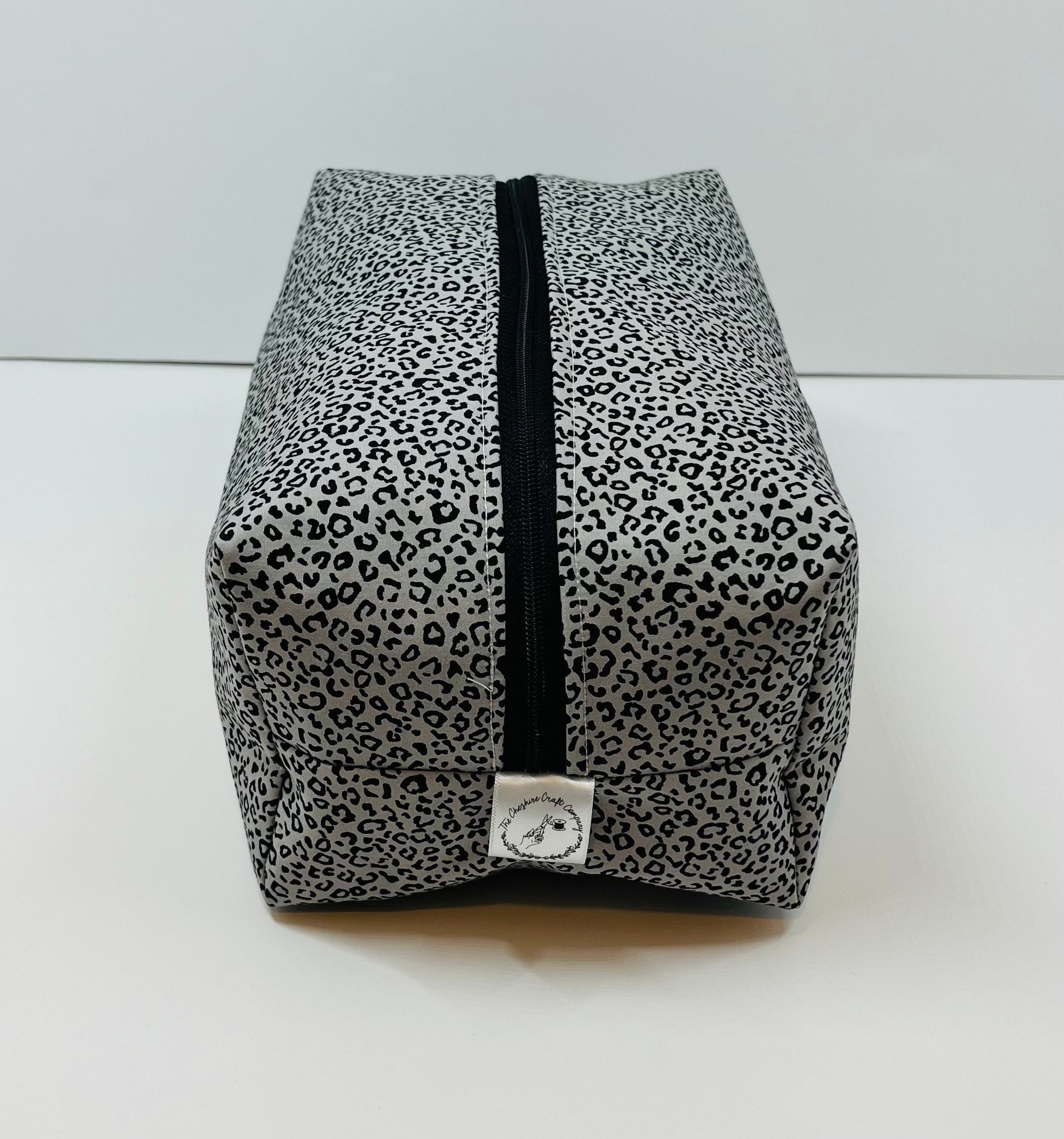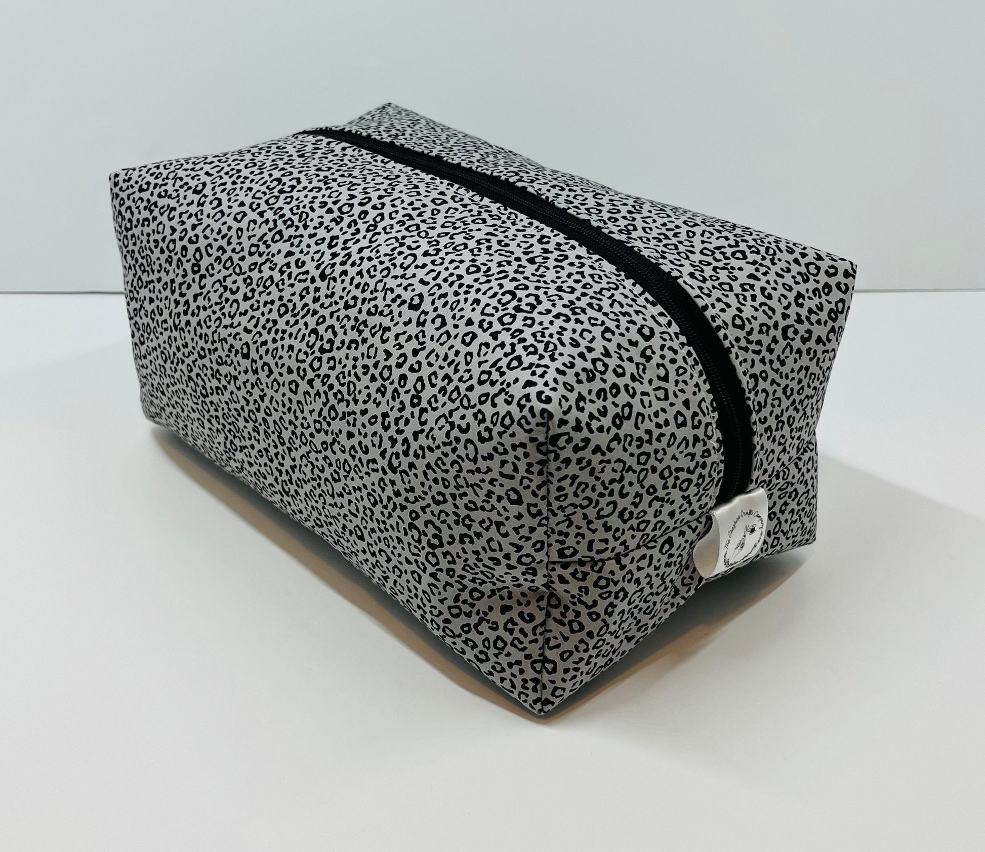 Travel in style with our handmade Grey Leopard Print Wash Bag, crafted in the UK from high-quality cotton for a fashionable yet durable finish.
