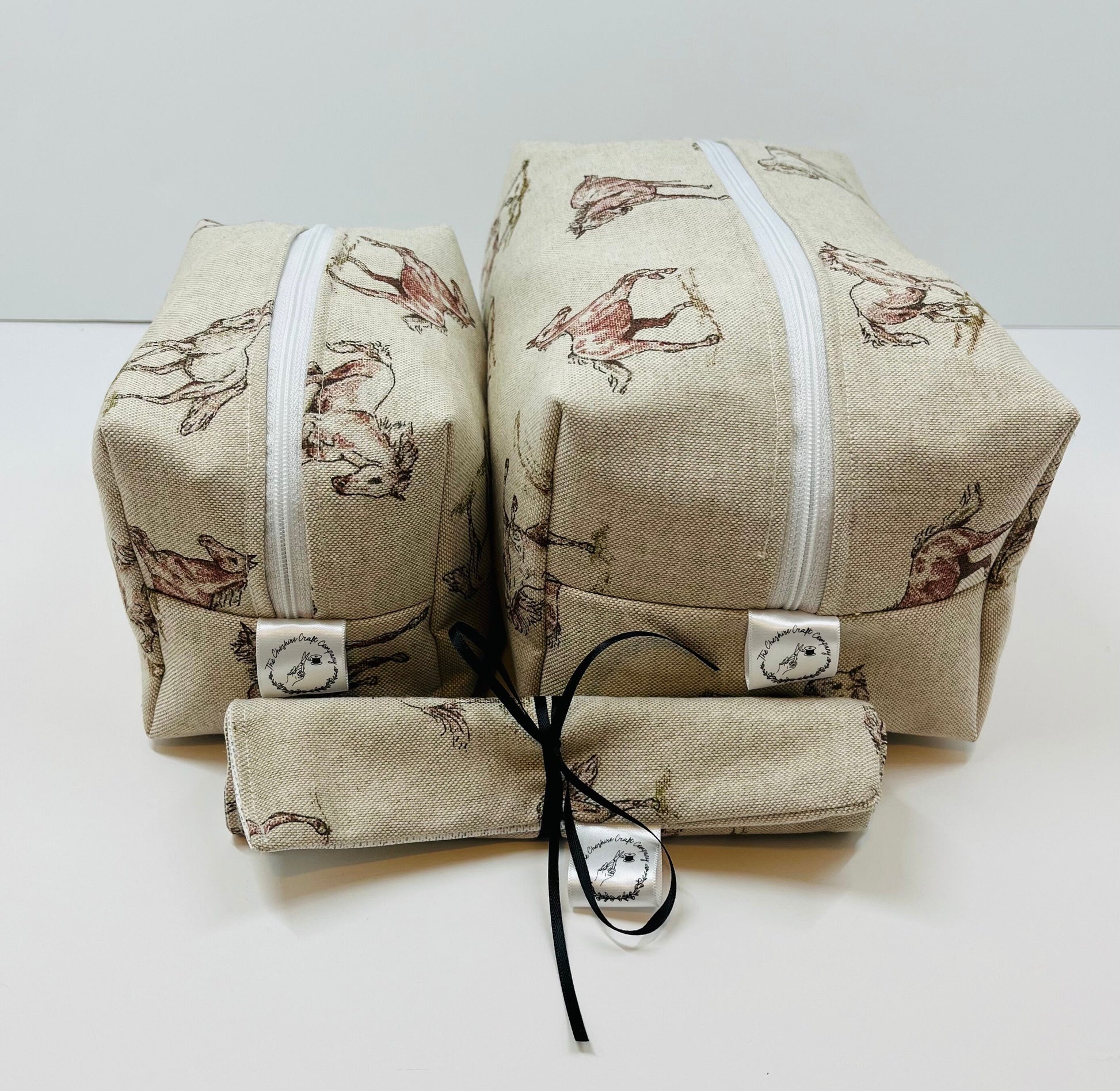 Travel in style with our handmade Horse Print Travel Set, crafted in the UK from premium linen. Perfect for horse lovers, this set includes: