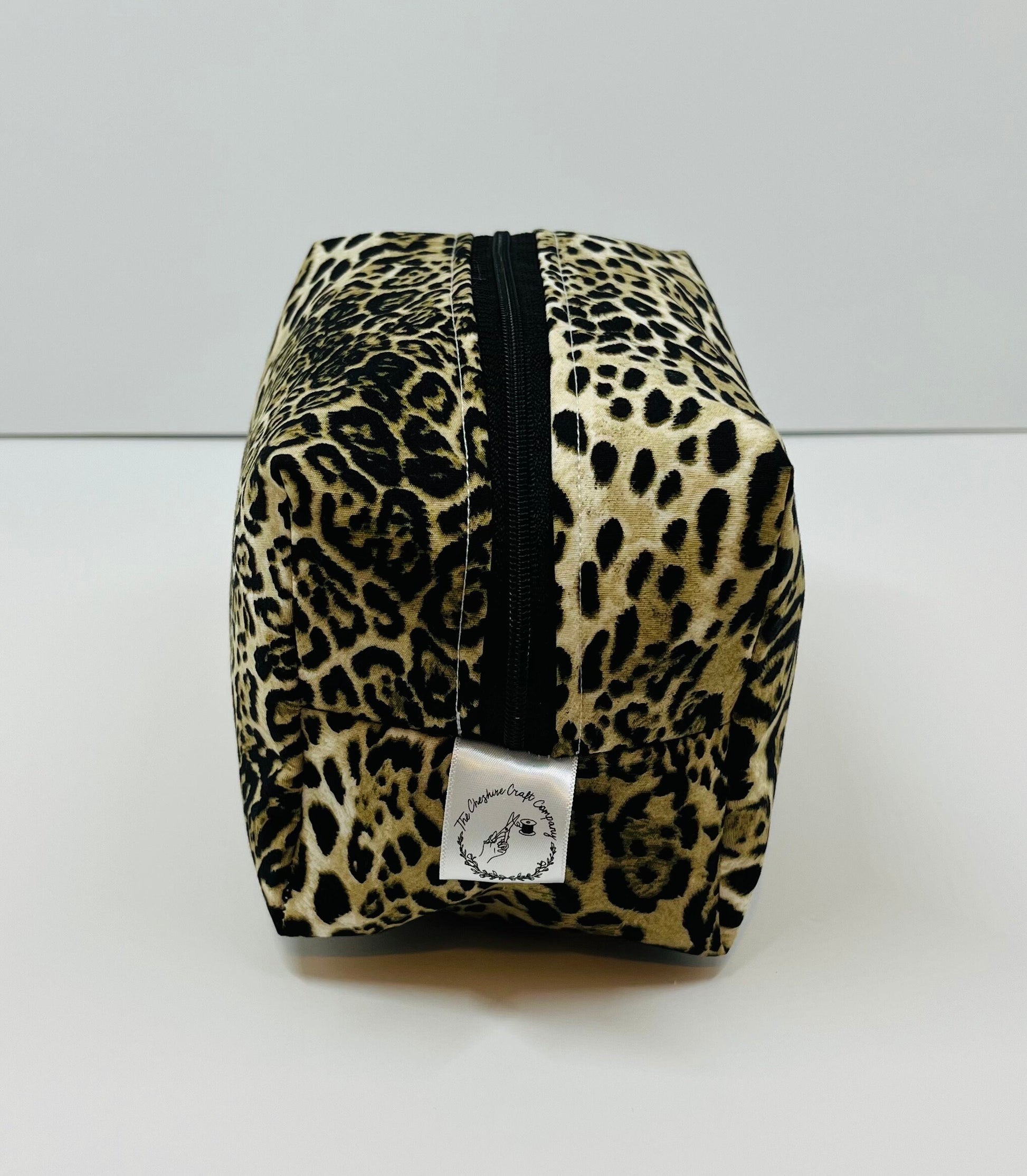 Keep your makeup organised in style with this chic leopard print bag, handmade from premium cotton. Its easy-wipe PVC lining protects against spills, making it perfect for travel or everyday use.
