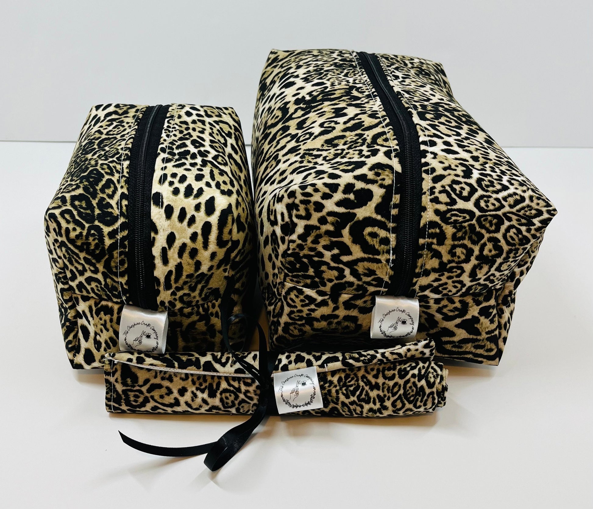 Travel in style with our handcrafted Leopard Print Travel Set, made from premium cotton and lined with easy wipe PVC to protect against spills.