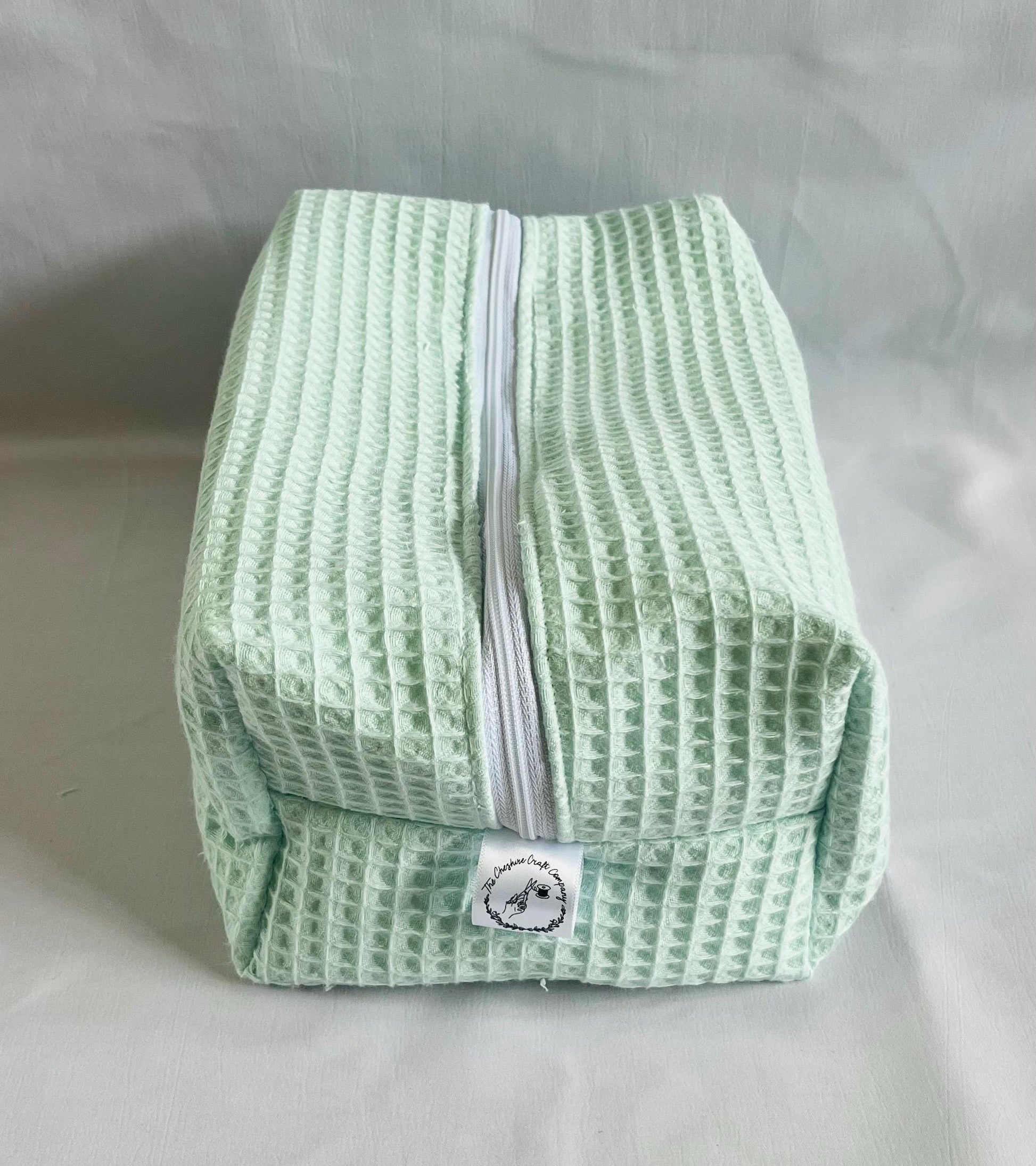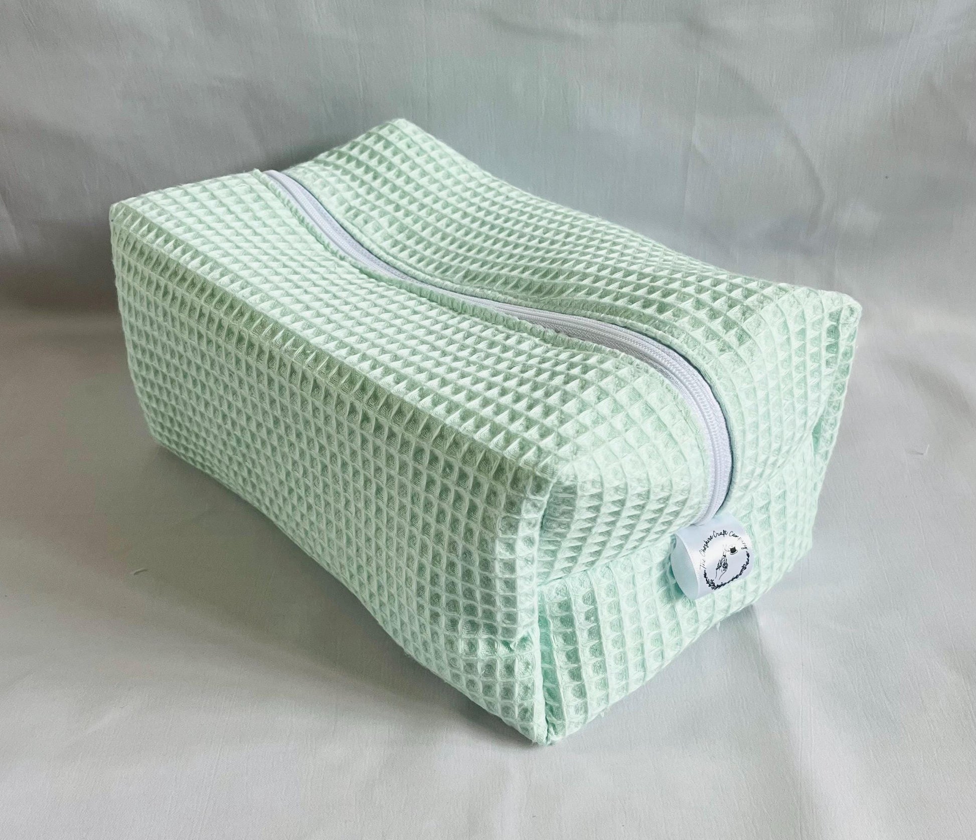 Keep your travel or beauty essentials organised in style with our Mint Green Waffle Wash Bag. Handmade in the UK from high-quality waffle/towelling fabric, this bag is as practical as it is charming.