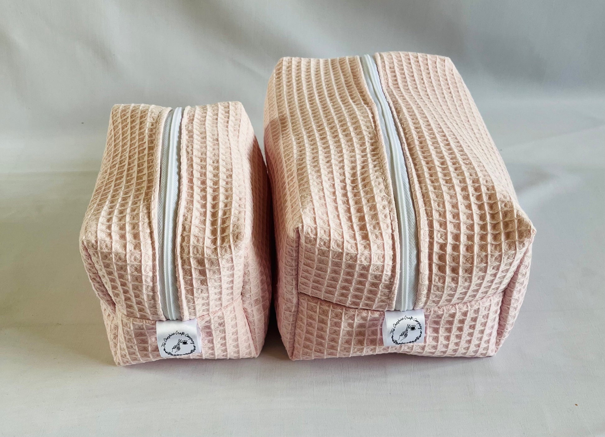 Keep your essentials organised in style with our handmade pink waffle cotton set,