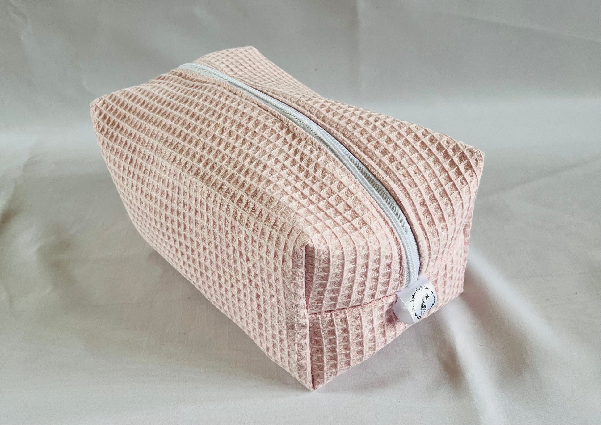 Lovingly crafted from premium waffle/towelling cotton, this 9” x 6” x 6” wash bag combines style and practicality.