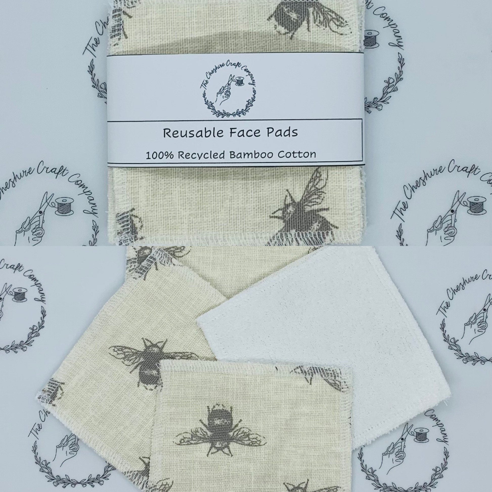 Introducing our Luxurious Handmade Makeup Remover Pads in Beige Bee Print, crafted in the UK from a soft cotton and 100% organic bamboo blend. These reusable pads offer a gentle, eco-friendly alternative to disposable wipes, helping you reduce waste while caring for your skin.