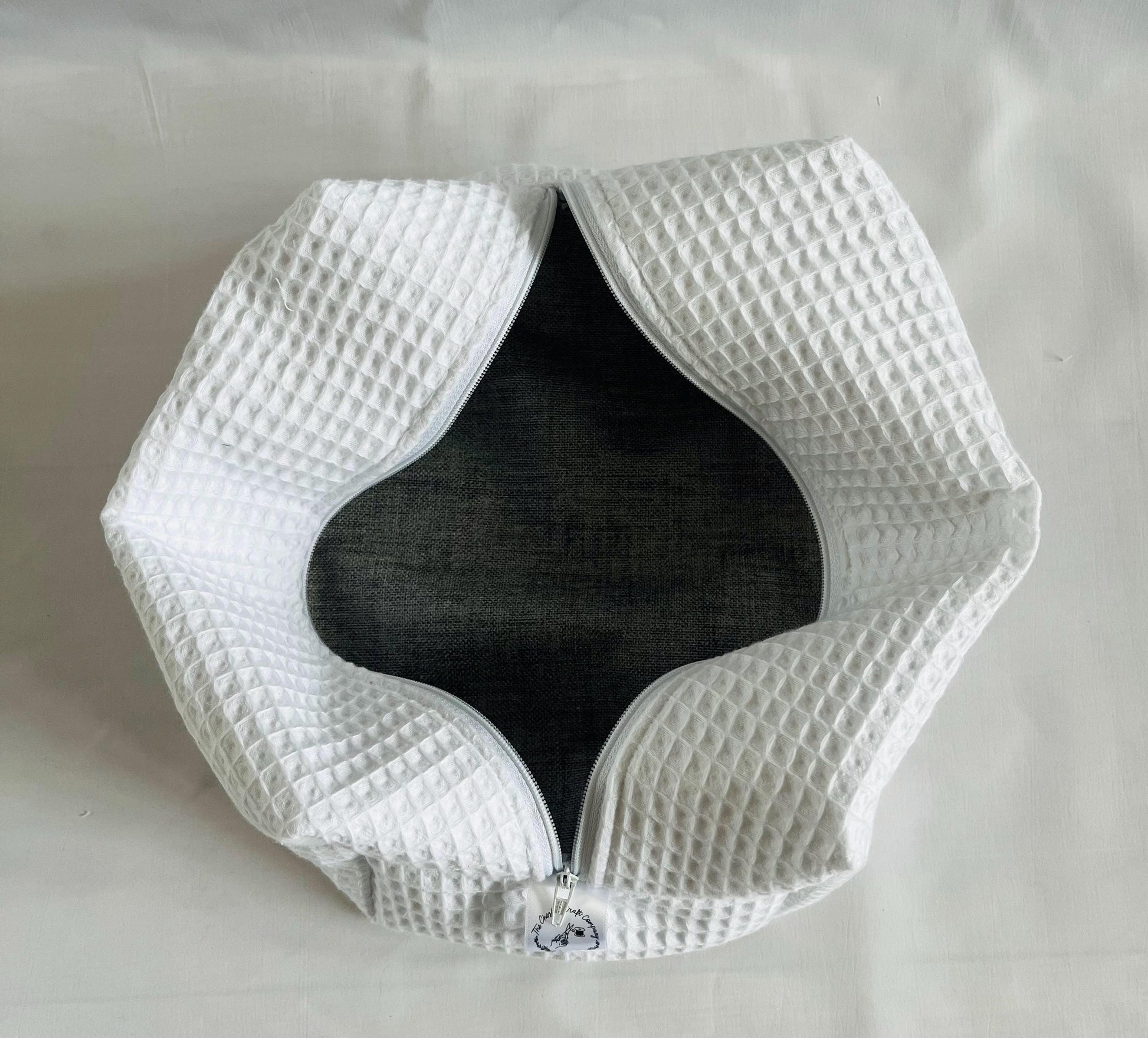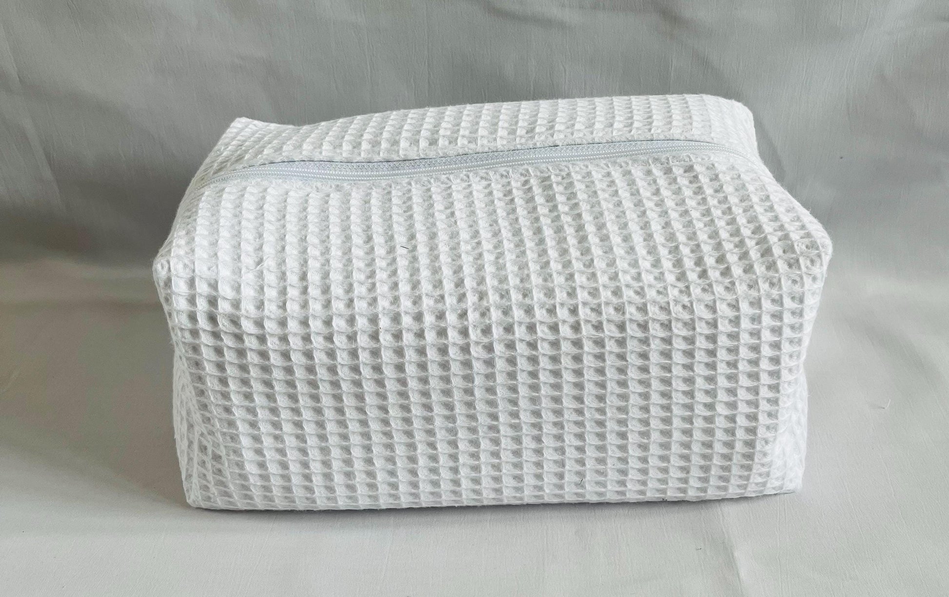 Keep your essentials stylishly organised with our White Waffle Wash Bag, handmade from premium waffle/towelling fabric. The easy wipe PVC lining protects against spillages for effortless cleaning.