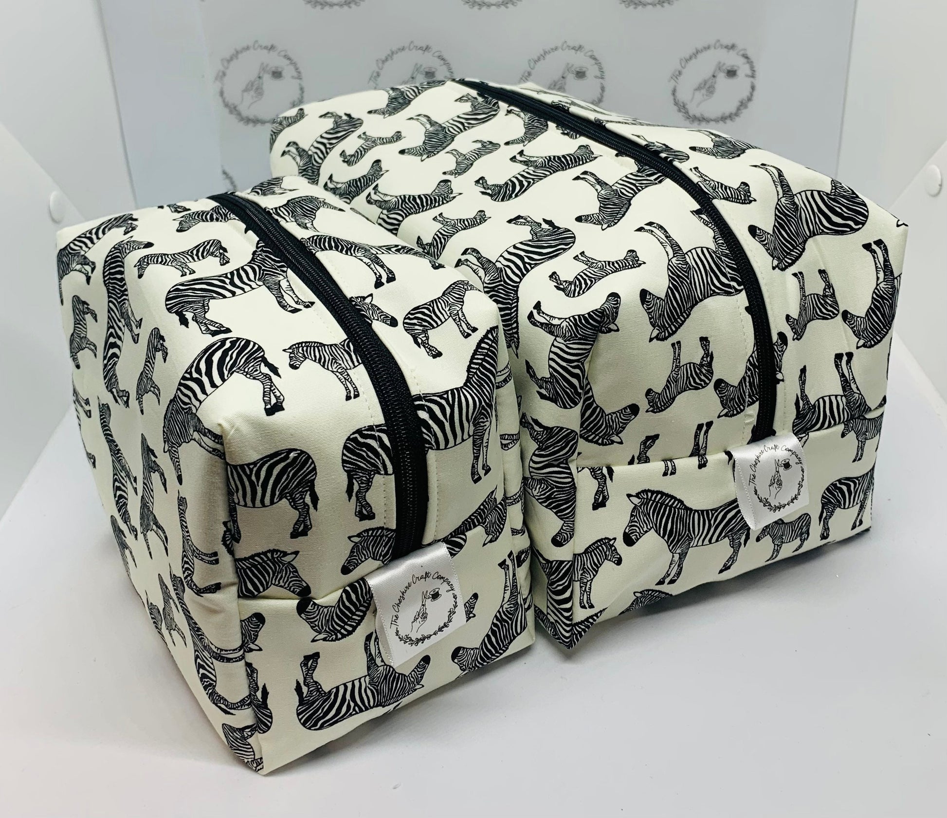 Add a touch of style to your daily routine with our Zebra Print Makeup and Wash Bag Set, handmade in the UK from premium cotton fabric. This set includes a small makeup bag and a large wash bag, perfectly sized for your travel or everyday essentials.