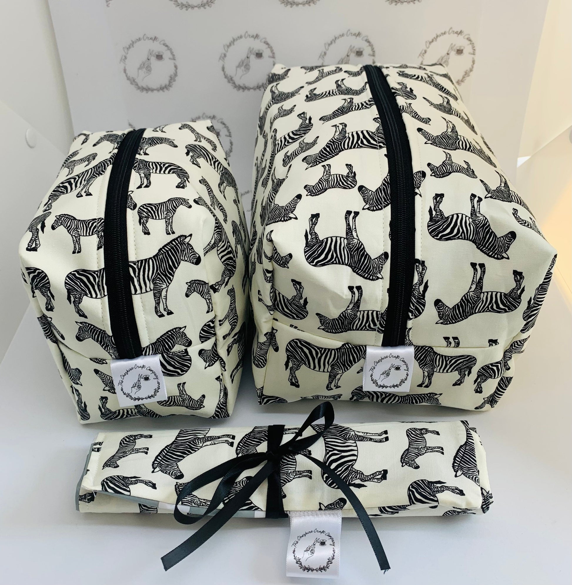 Make a statement wherever you go with our Zebra Print Travel Set – a bold and beautifully handmade collection, crafted in the UK from premium-quality cotton fabric. This eye-catching set includes everything you need to stay organised in style: